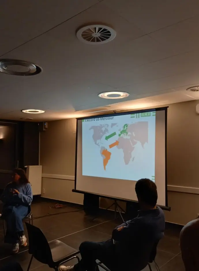 Très chouettes échanges après la projection au Kibboutz ! Merci tout spécialement aux permanentes du CNCD-11.11.11 qui étaient présentes aussi pour nous parler de l'accord UE-MERCOSUR, Marie, Camille et Caroline !